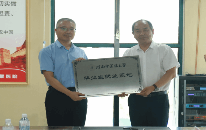 本网讯(文/程柯 图/张羽萍)6月26日,我校党委委员、副校长苗明三带领学校发展规划与学科建设处处长孙可兴、*肉漫画 党委副书记李伟峰、副书记孟长海、副院长刘斌和辅导员走访许昌龙耀医院,开展“访企拓岗促就业”专项行动,举行毕业生就业基地签约、授牌仪式。