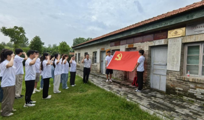 在到达黄湖农场后跟随讲解员的步伐,队员们了解到在1969年为响应毛泽东同志的“五·七”指示号召,众多团中央机关直属单位的全体干部和工勤人员来到河南省潢川县的黄湖农场,并在此建立“五·七”干校,接受劳动锻炼和思想教育。四年多的时间里,广大干部群众发扬身处逆境、战天斗地、自力更生、吃苦耐劳的乐观主义精神,为黄湖农场的建设发展作出了历史性贡献。陈列馆里的件件物品让队员们感受到了先辈们为推动国家发展,不怕困难,吃苦耐劳的坚定信念和无私奉献精神。参观完陈列馆后,李书记带领师生一起宣读了入党誓词,铿锵有力的誓言响彻云霄,让每一位师生深刻体会到了作为新时代青年的责任与使命。
