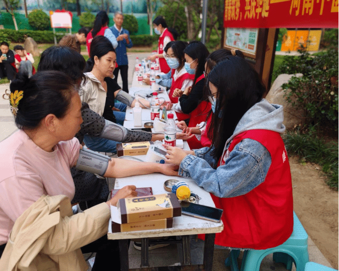 午后的阳光洒在社区广场上,志愿者们早早地就来到了活动现场,开始紧张而有序地布置场地。随着社区居民的陆续到来,社区义诊活动正式拉开帷幕。志愿者们分工明晰,各尽其责,耐心地为社区居民提供血糖测量、血压测量、健康知识咨询、按摩推拿、中医艾灸等服务,亲切地询问居民的日常身体状况、饮食习惯、睡眠状况等方面的问题,并结合专业知识为居民提供有针对性的身体养生建议。整个活动过程中,志愿者们始终以饱满的热情和专业的态度为居民们服务,赢得了他们的一致好评和高度赞扬。活动结束后,一位社区居民感慨地说:“太谢谢你们了,我年纪大了,腿脚不灵活,来回去医院检查也不太方便,你们来义诊真的解决了我的大麻烦。”