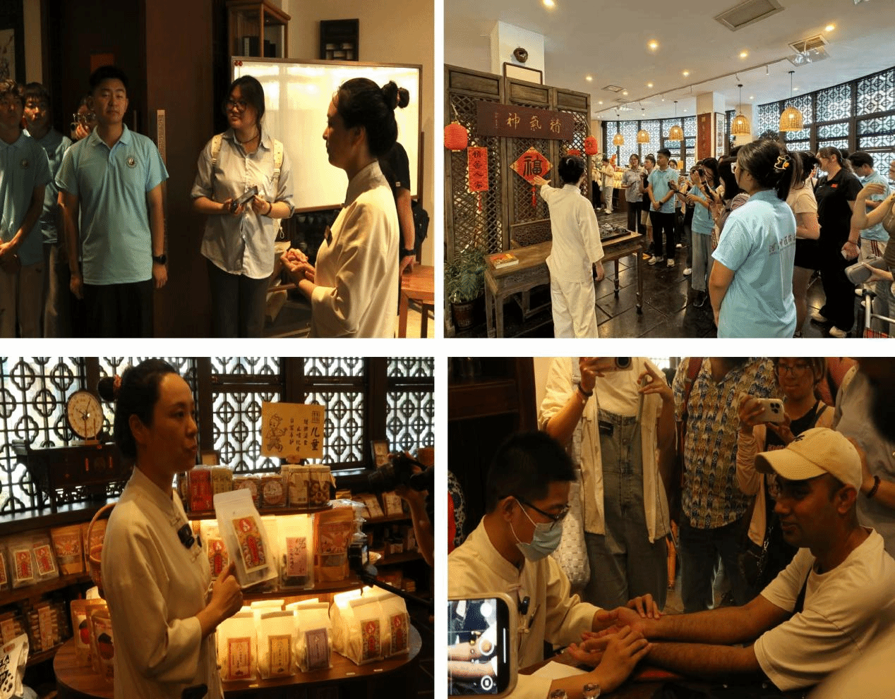 学科交融探岐黄,文化传承启新程。7月7日上午,两校师生齐聚郑州东济堂中医馆,在东济堂中医馆宣传文化部郭主任的带领下,师生们踏入这座兼具古色古香建筑风格与现代化医疗设备的中医馆。活动中,师生们首先参观国医大师工作室,深刻领略到传统“望闻问切”诊疗方法与现代智能诊断设备相结合所展现的中医药创新发展成果。随后,在医馆工作人员引导下,大家走访儿科外治、上品药局、外治推拿科室等区域。精致的医疗器具、典雅的养生货庄,无不彰显着中医药文化的深厚底蕴,令师生们大开眼界,他们不断观察询问,沉浸式感受中医药文化的独特魅力。值得一提的是,作为河南省示范中医馆、河南省中医药文化宣传教育基地,东济堂始终致力于中医药文化传播与健康理念普及。此次活动不仅让师生们收获专业知识,更成为一扇了解传统中医药文化的窗口,激发了大家对中医文化的浓厚兴趣,助力中医药文化传承与创新迈向新征程 。