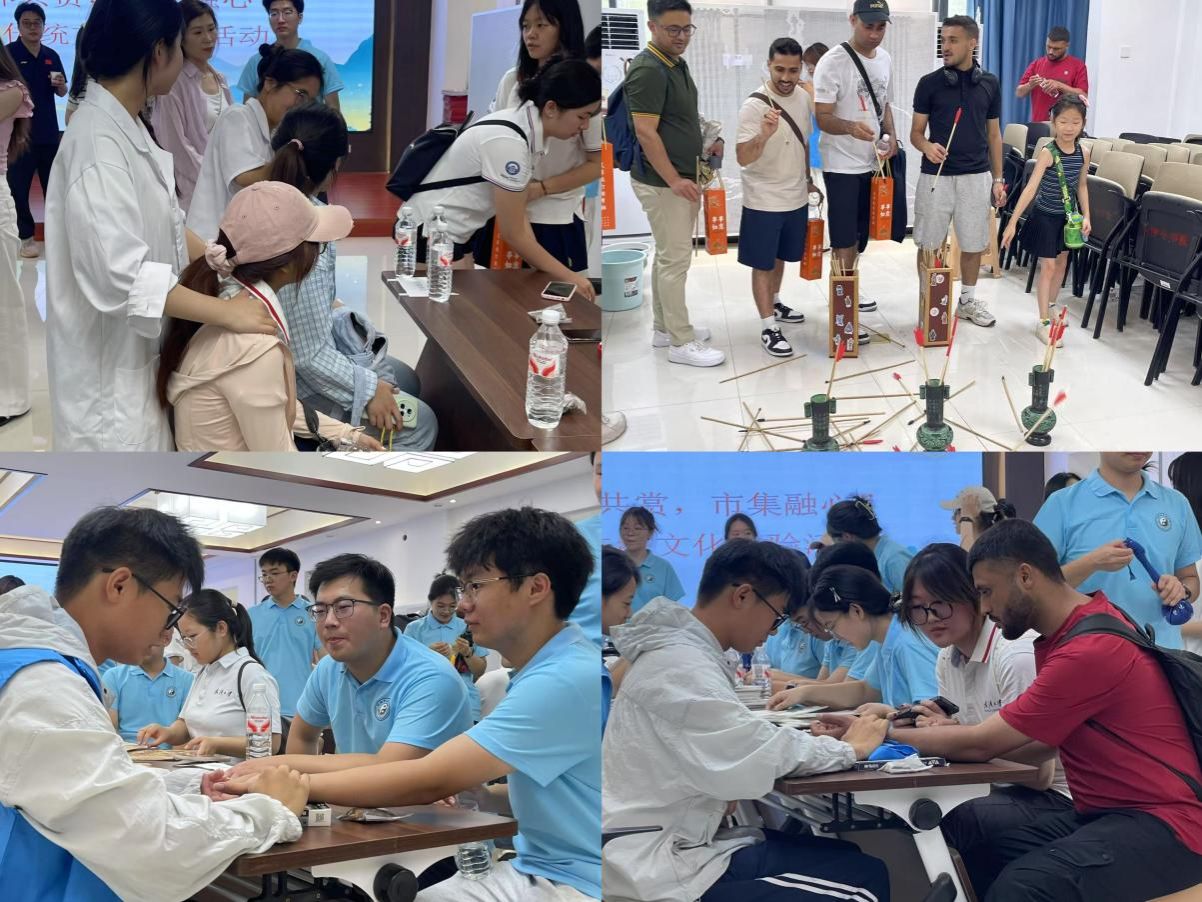 逛集市亲身体验 感受中医药生活智慧。由中医学院(仲景书院)组织的“中医药文化集市”热闹开集,这场精心设计的活动汇聚了非遗技艺展示与趣味互动,成为中外学子交流体验的焦点。留学生们被漆画台前的本草纹样吸引,在执笔描摹中感受药材形态与艺术表达的融合;推拿体验区里,他们在专业师生的指导下尝试经络按压,亲身感受中医调理的奇妙;中外学子结对协作,或共同捶制艾草养生锤,在反复捶打中体会草药与布囊的结合之道,或围坐一起穿针引线缝制驱疫香囊,碾药、配材、封口的过程中,欢声笑语与草药清香交织。集市中,金箔贴画摊位以精巧工艺再现《本草纲目》中的经典药材图谱,细节处尽显传统技艺与医药典籍的碰撞;“中药猜猜看”游戏前,大家对着陌生的药材标本热烈讨论,而中医药拼图则让抽象的经络走向、药材分类变得直观可感。投壶区更是人气高涨——古礼游戏与中药知识问答相结合,参与者需先答出“黄芪的功效”“生姜的药性”等问题才能投掷,箭矢落壶的清脆声响与答对题目的欢呼交织,让传统智慧在轻松竞技中焕发新生。