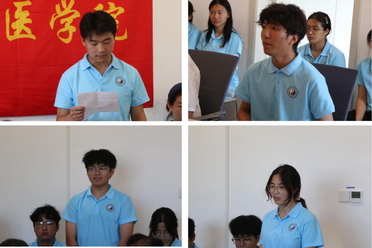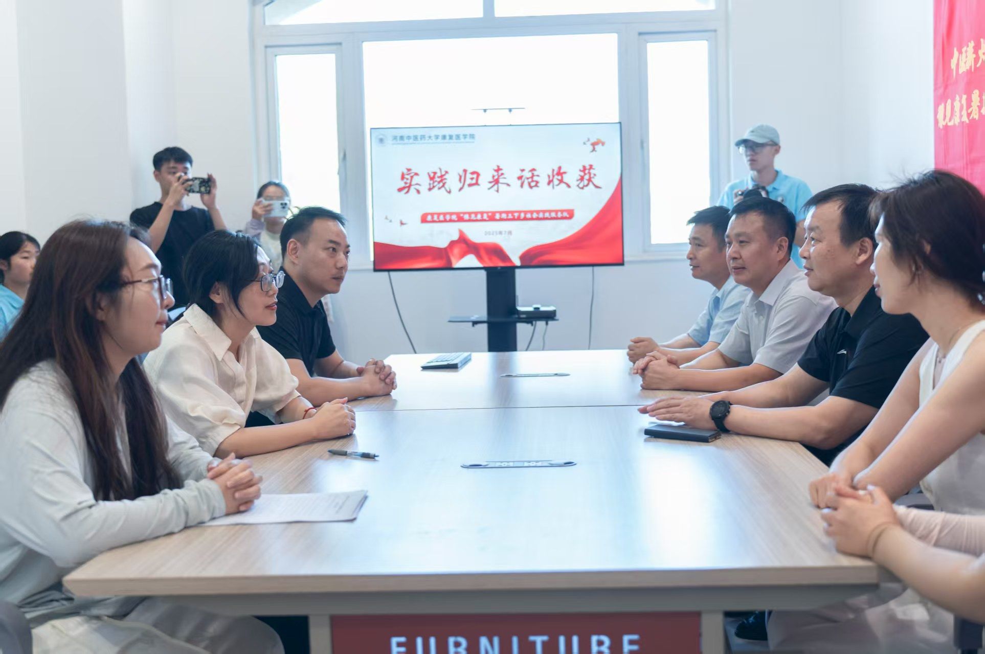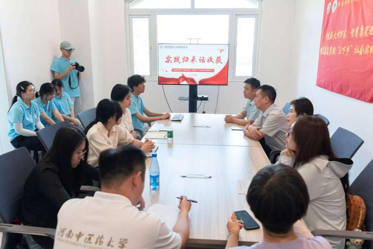 接着,社会实践带队教师李波波对本次暑期“三下乡”活动进行了全面总结。他指出,肉漫画 “豫见康复”团队于7月8日至12日在许昌厚德康复医院开展了为期5天的暑期社会实践活动,累计服务超50小时,足迹遍布许昌厚德康复医院、长葛市文汇社区等8个重点地点。活动中,许昌厚德康复医院在前期对接、食宿安排等方面细致周到,为团队提供了“沉浸式”临床实践学习场景,还携手团队将康复服务延伸至基层社区和老年养护院。双方通过校院合作,不仅让学生提升了专业技能、领悟了医者使命,更彰显了“厚德”担当,为未来深化人才培养、技术研发等方面的联动奠定了基础。在交流环节,学生代表们依次发言。研究生代表李德臣与本科生代表梁庆琛、郑海龙、丁嘉欣纷纷表示,衷心感谢许昌厚德康复医院提供的宝贵实践平台,感恩学院领导老师的全程关注与悉心指导,带队老师们的言传身教更让他们深刻体会到“大医精诚”的职业精神。其他学生也一致认为,此次实践不仅提升了专业技能,更坚定了投身康复医学事业的信念。