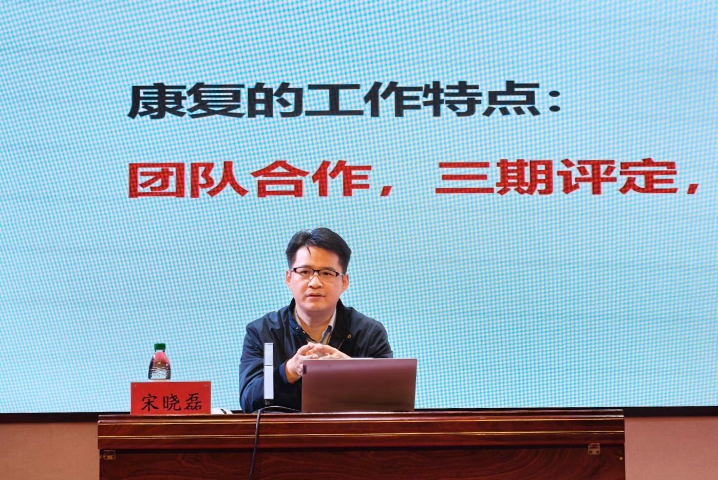 讲座中,宋主任首先介绍了康复的内涵、康复医学及运动康复的区别与联系,让学生了解到康复需要综合、协调地应用各种措施,消除或减轻病、伤、残者身心、社会功能障碍,达到或保持最佳功能水平,增强自立能力,使其重返社会,提高生存质量。结合目前康复科的发展历程介绍了康复的基本原则、工作特点以及医学常见病种及治疗方法等,加深学生对本专业的认识。最后,针对新生关于就业前景及升学的相关问题,宋主任结合自身经历经验为学生细心解答,立足当下,以点带面,进一步明确作为康复治疗师在工作当中可能会面临的机遇与挑战。并强调每个治疗师应具备四项基本能力,即创新力、服务力、责任力、传承力,希望康复学子能在日后学习工作中实现自我的价值,更好地服务于学校和社会的发展。
