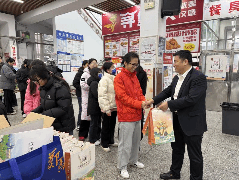 刘斌亲手为同学们送上慰问礼品,表达了对大家辛勤付出的肯定与美好未来的祝福。他叮嘱同学们在冲刺阶段要注重劳逸结合、科学备考,提高复习效率,要关注身心健康,注意防寒保暖和规律作息,同时务必强化安全意识,保持积极乐观心态,坚信付出终有回报。最后,他表示学院始终是同学们的坚强后盾,会全力为升学之路保驾护航。
