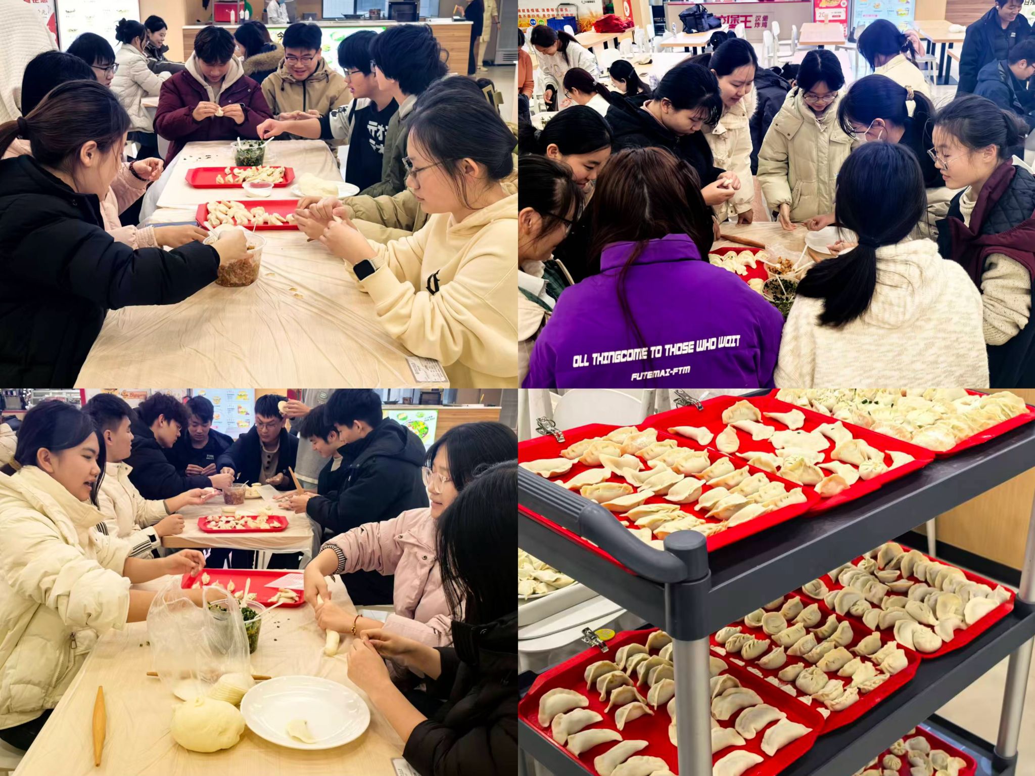 活动前期,学院分团委提前筹备面粉、馅料、厨具等物资,精心划分操作区域,确保活动有序开展。活动现场,同学们分组协作、分工明确:有的负责擀皮,手法娴熟地转出一张张圆润均匀的饺子皮;有的专注包馅,将鲜香的馅料巧妙包裹,捏出褶皱分明的花边;还有的发挥创意,包出元宝、月牙等造型各异的“特色饺子”,案板上很快摆满了形态多样的饺子,欢声笑语中洋溢着浓厚的集体氛围。从生疏试探到熟练操作,从独自尝试到互帮互助,同学们在实践中学习技能,在协作中增进友谊。当一锅锅热气腾腾的饺子出锅时,大家围坐在一起分享劳动成果,品尝着自己亲手包的饺子,脸上洋溢着满足的笑容。