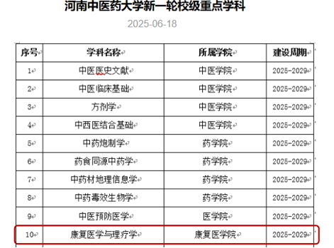 本网讯(文/图 张聪聪)康复医学与理疗学学科于2025年6月立项校级重点学科,本学科是中医学、康复治疗学与工程技术的交叉学科,是在中医康复学科的基础上进行专科分化、创新发展而来。中医康复学科始创于2005年,2007年作为省内首个康复医学与理疗学硕士点招生;2012年康复治疗学本科专业招生;2015年中医康复学博士招生;2015年成立肉漫画 ;2018年中医康复学专业招生。现有三个硕士点:康复医学与理疗学、中医康复学和医学技术(康复治疗学方向)。学科现有国家中医药管理局重点学科、专科,国家区域中医(专科)诊疗中心,国家一流本科专业建设点,河南省康复器械工程研究中心,河南省中医康复质控中心等学科平台。