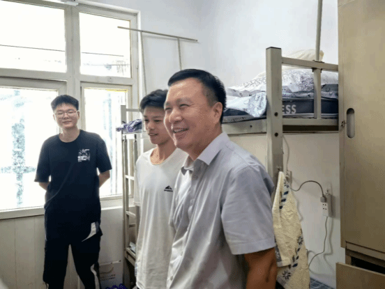 (党委副书记李伟峰,副院长许国防到宿舍看望新生)
