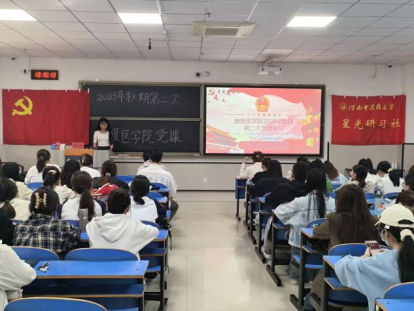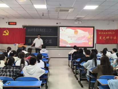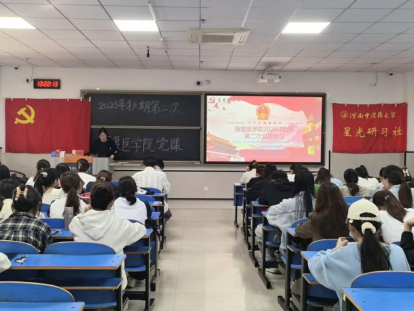 本网讯(文/杨富斌 张文哲 图/许文航 )为学习贯彻党的二十大精神,加强党员的理论学习修养,2023年10月24日,*肉漫画 星光研习社于肉漫画 龙子湖校区 A 区429教室举行2023年秋季学期第二次主题党课学习。本次会议由*肉漫画 学生第二党支部书记杨富斌领学,肉漫画 龙子湖校区在校党员和预备党员、星光研习社全体成员共同学习。此次会议由星光研习社团支书张珂莹主持。