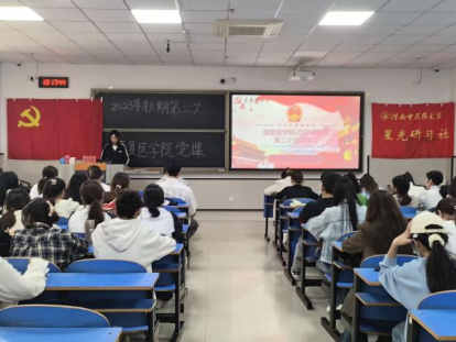 随后,各学生党支部学生代表经过学习讨论后进行汇报。研究生党支部张丽红同志发表学习心得:中国共产党始终坚持教育发展的人民立场,历来强调发展教育为了人民。而加强党员学习的同时也更能发挥党员的先锋模范作用,有利于推动以高带低,以老带新,带动全院同学的思想理论学习迈向新台阶。学生第一党支部郭梦迪同志发表学习心得:教育兴则国家兴,在中国共产党的领导下,教育事业不断取得成就。当代青年更应加强思想理论学习来贯彻落实党的二十大精神。学生第二党支部韩秦浩同志发表学习心得:要深刻认识全面建成社会主义现代化强国对加快建设教育强国的内在要求,有力回答“强国建设、教育何为”这一时代课题。同时,也要深刻认识科技革命、产业变革的深入推进对教育变革提出的迫切要求,更好推动教育成为经济社会发展的基础支撑和关键力量。学生第三党支部秦思雨同志发表学习心得:建设高质量教育发展和管理体系,有利于解决卡脖子问题,扎实推进高等教育全面深化改革。大学生要坚持不懈用党的创新理论最新成果武装头脑、指导实践、推动工作和生活。星光研习社社员刘怡珊同志发表学习心得:党坚持立党树人的根本任务,坚持科学育人的成才理念,坚持发展为了人民。要明白只有更好的了解教育历史才能看到更远的未来,理解教育的本质才能走的远。