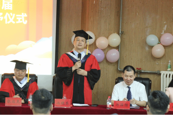 学院院长、学位委员会主席冯晓东发表讲话,殷殷寄语毕业生同学。冯院长首先向毕业生同学表达祝贺,向为做好毕业生工作而辛勤付出的辅导员,学生干部们表示感谢。他寄语同学们:一是要不忘初心,离开校园后要牢记母校的嘱托,在外面要学好本领、增长才干。二是希望同学们永远不要停下探索的脚步,同时要做一个高尚的人,要胸怀天下,在自己未来的岗位上发光发彩。三是希望同学们常回母校看看,*肉漫画 的大门永远为每一位同学敞开。冯院长叮嘱同学们要保持乐观心态,茁壮成长,更远的天空等着大家去翱翔,更远的理想等着大家去实现。