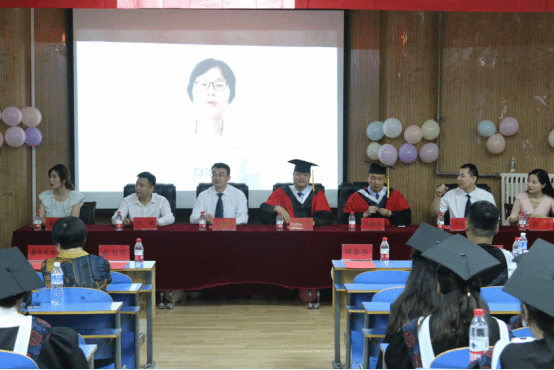 在激昂的国歌声中,毕业典礼正式拉开帷幕。师生共同观看了2023届毕业生视频及老师寄语视频,回顾了2023届毕业生在校的点点滴滴。刘斌副院长汇报了2023届毕业生及学位授予情况,孟长海副书记为获得河南省、学校优秀毕业生颁发证书,班主任程雪代表教师发言,希望同学们能够牢记厚德博学的校训,走好人生每一步。河南省优秀毕业生、2019级康复治疗学本科班徐韵婷回顾了大学学习历程,代表毕业生向母校和老师表达了真诚的感激。
