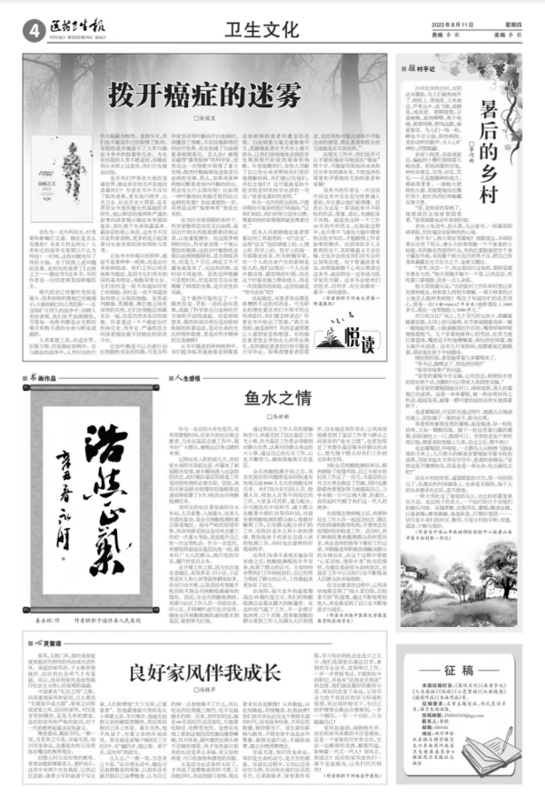 (图/文 张羽萍)关于志愿服务,习近平总书记这样说:“志愿服务是社会文明进步的重要标志,是广大志愿者奉献爱心的重要渠道”。2022年8月11日,《医药卫生报》刊登了肉漫画 2020级中医康复学本科二班学生马世新的文章《鱼水之情》。文章中,他根据自身暑期志愿服务的实践经历表达了在基层参与志愿服务的感悟体会,他的一言一行不仅体现了当代大学生积极投身志愿服务的热情,也彰显了康复学子的青春风采。