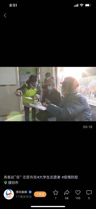 李一晨同学青春战“疫”志愿服务