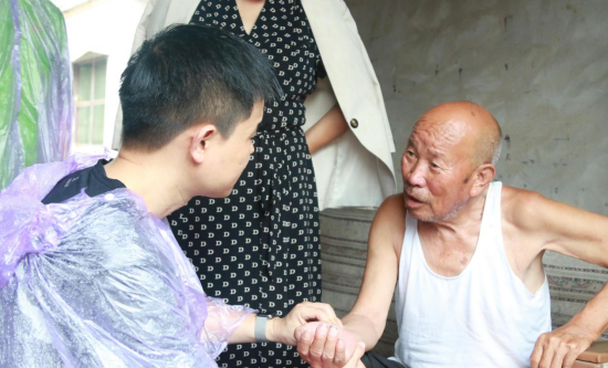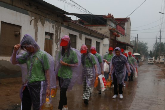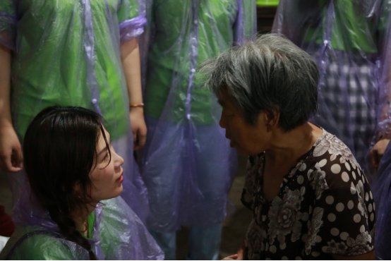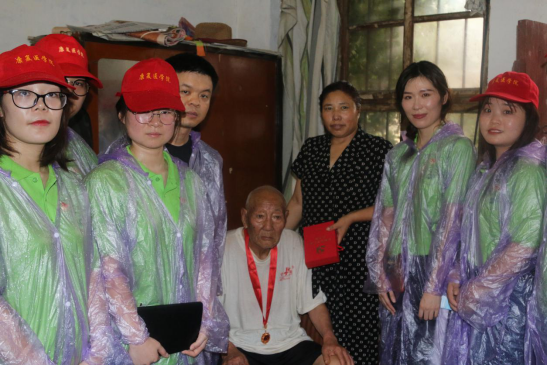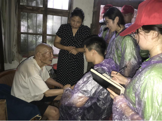 途中突遇暴雨,但同学们依然热情不减,带着面粉和粮油,不畏风雨,在坑坑洼洼且泥泞湿滑的乡村小道冒雨前行。随后,团队成员们与老党员及其家属进行了亲切互动,以拉家常的方式详细了解生活来源,细致询问生活情况。陈岩副教授则采用中医传统疗法为老党员们的身体状况进行针对性的诊疗。最后,服务团成员们围坐在一起认真倾听老党员们讲红色革命故事,感受革命情怀。一位拥有51年党龄的老村长颤抖着双手动情的说:“你们冒着大雨特来看望我,感谢党和政府的关怀!我会保重好身体,见证祖国的发展!”在与这些老党员的交流中,服务团成员们认识到他们多年来都是坚持以“艰苦奋斗,无私奉献”为原则,即便建设过程中条件极为艰苦,他们也从未有过抱怨,在那个条件艰苦的年代,他们用他们坚实的步伐为后辈树立着奋斗拼搏的榜样。