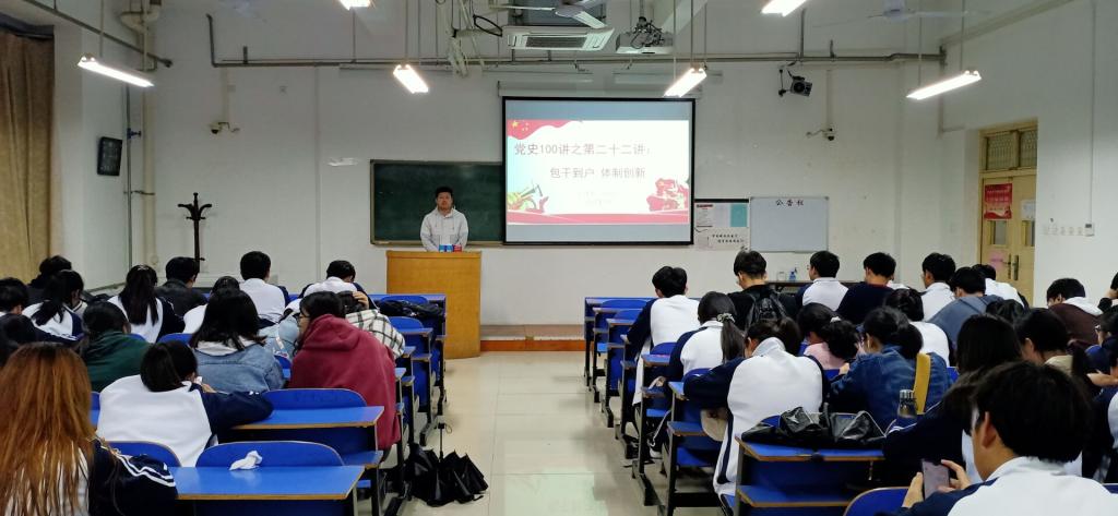 (文/姚明超 图/程凯)为激发*肉漫画 学子学党史的热情,带领全院广大团员青年深入了解党的历史,*肉漫画 特举办“凝聚青春力量,红色薪火相传”主题教育系列活动,在4、5月份持续进行红色基因进班级之党史100讲,通过一个个党史小故事的学习,带领同学们重温党史,感悟中国共产党一路走来的辉煌历程。2021年5月13日开展党史100讲之第二十二讲:包干到户,体制创新。