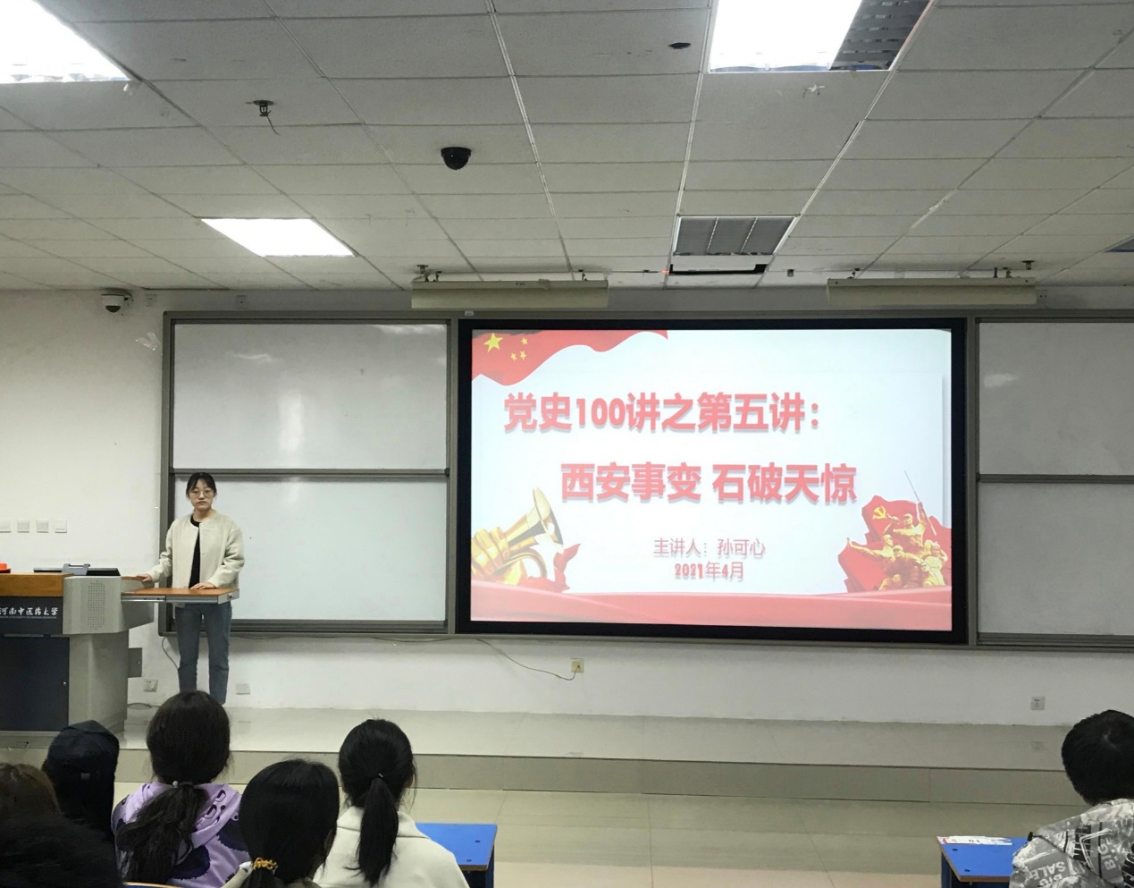 (文/姚明超 图/程凯)为激发*肉漫画 学子学党史的热情,带领全院广大团员青年深入了解党的历史,*肉漫画 特举办“凝聚青春力量,红色薪火相传”主题教育系列活动,在4、5月份持续进行红色基因进班级之党史100讲,通过一个个党史小故事的学习,带领同学们重温党史,感悟中国共产党一路走来的辉煌历程。2021年4月12日开展党史100讲之第五讲:西安事变,石破天惊。