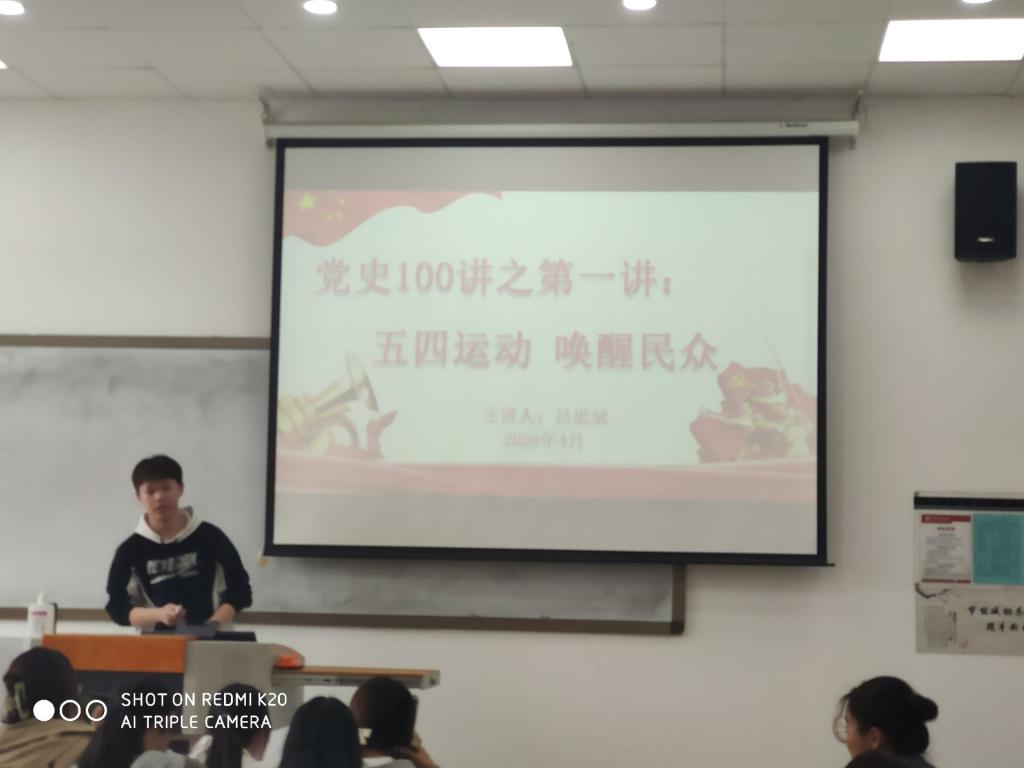 活动开始,由主讲人吕忠斌带领同学们了解了五四运动的历史背景与历史意义,它不仅仅是一批先进青年和知识分子为先锋、广大人民群众参加反帝反封建的伟大爱国主义运动,更是一场伟大的思想解放运动和新文化运动。五四运动以后,在中国共产党的领导下,中国人民争取进步和推动历史前进的斗争,一代又一代青年站在历史的前列,不屈不饶奋斗,历尽艰辛求索,创造了令人赞叹的业绩。