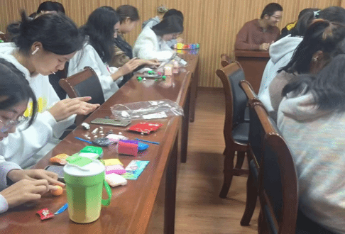 活动伊始,由欧阳立群通过PPT向大家介绍了沙盘游戏中的动物意象,以猫狗等一些可爱的小动物为例向同学们介绍心理沙盘疗愈的意义。活动过程中,同学们互相交流,积极讨论对自己而言重要的动物意象形象与隐含的情感因素。之后,同学们使用彩色黏土制作和自己性格最相似亦或是最喜欢、最讨厌的沙盘动物小道具。在活动最后的交流分享环节,同学们积极发言,充分展示自己的作品并分享自己的理解及感受。