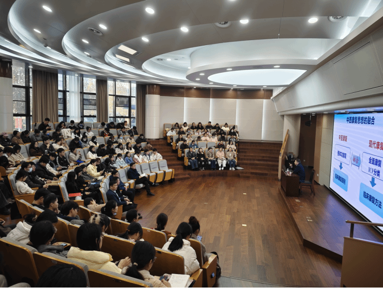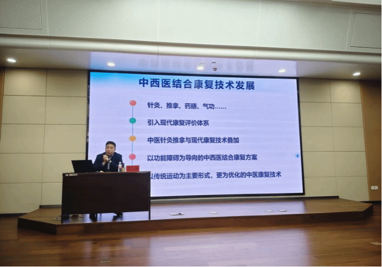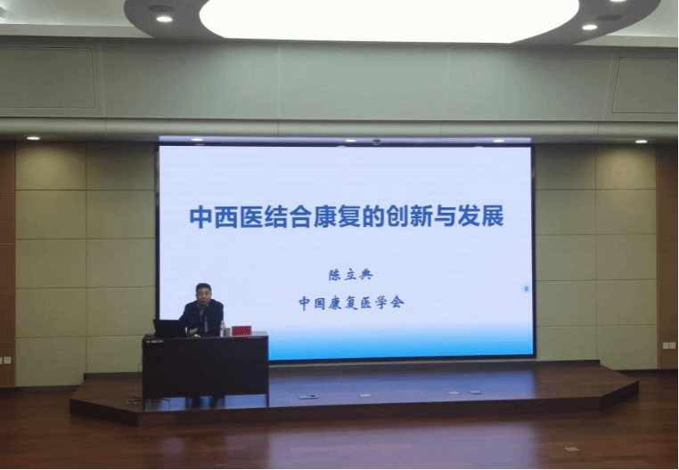 会上,陈立典教授以《中西医结合康复的创新与发展》为题进行授课,从针灸、推拿、药膳、气功等传统中医康复治疗讲起,逐渐引入中医针灸推拿与现代康复技术叠加,从而建立以功能障碍为导向的中西医结合康复方案,并引出目前最新研究成果、各种康复治疗方法和最佳实践,为大家带来了一场康复医学领域的知识盛宴。“康复是一门实践性很强的学科,只有通过不断的实践才能真正掌握其精髓。”陈立典教授指出,在健康中国的大背景下,党和国家高度重视发展康复,介入康复,能够减轻疾病状态、加快疾病恢复,因此我们所属学科现具有显著特色和优势,要将其学习好、继承好、发扬好。此外,陈立典教授强调,中医康复是中国康复医学固有的特色优势,其有效技术已经成为康复医疗的核心手段,在疾病康复中发挥着重要作用。诸多中医康复方法已经作为某些功能障碍的常规措施,普遍应用于康复临床,为改善和提升患者的身体功能发挥作用。如今,中西医康复相互融合成为中国康复医学发展的主流趋势。中西医结合康复在疾病康复中的应用更加广泛,在冠心病、脑卒中、老年性障碍、认知功能障碍等疾病中,其优势都较为明显。我们当进行好中西医结合康复的融合与创新,并将未来研究重心放在中医康复共性技术、传统运动的临床和基础研究及中医康复技术的科学基础上。授课结束后,陈立典教授还与肉漫画 师生展开了热烈的交流,为同学们解答疑难、互动交流,现场学习氛围热烈浓厚。