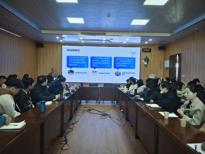 随后,副院长许国防强调,科研诚信和实验准确性是同学们学术研究和科学探索的基础,大家要时刻保持严谨的态度,将科学方法论融入实验设计和数据分析中,做到精益求精。同时通过丰富的案例分析,深入阐述了科研假说验证过程中的注意事项。从实验设计的基本原则,如随机化、对照和重复性,到实验数据的准确记录和统计分析,让同学们深刻认识到科研过程中的严谨性和精确性至关重要。对此,同学们纷纷表示会积极运用所学,密切关注实验设计和数据分析中的各类潜在问题,确保科研工作的质量和可靠性。