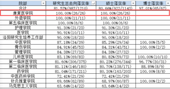 截至 2025 年 8 月 20 日,根据学校最新统计数据显示,肉漫画 2025 届硕士研究生毕业人数 26 人,落实人数 26 人,落实率 100%,部分同学入职于郑州大学第二附属医院、新乡医学院第一附属医院、肉漫画 第二附属医院等医疗机构,且就业质量高,专业匹配度佳,深受用人单位好评,展现出学院卓越的人才培养质量与就业工作成效。这一优异成绩不仅远超学校 81.57% 的平均落实率,更在全校各培养单位中名列前茅。